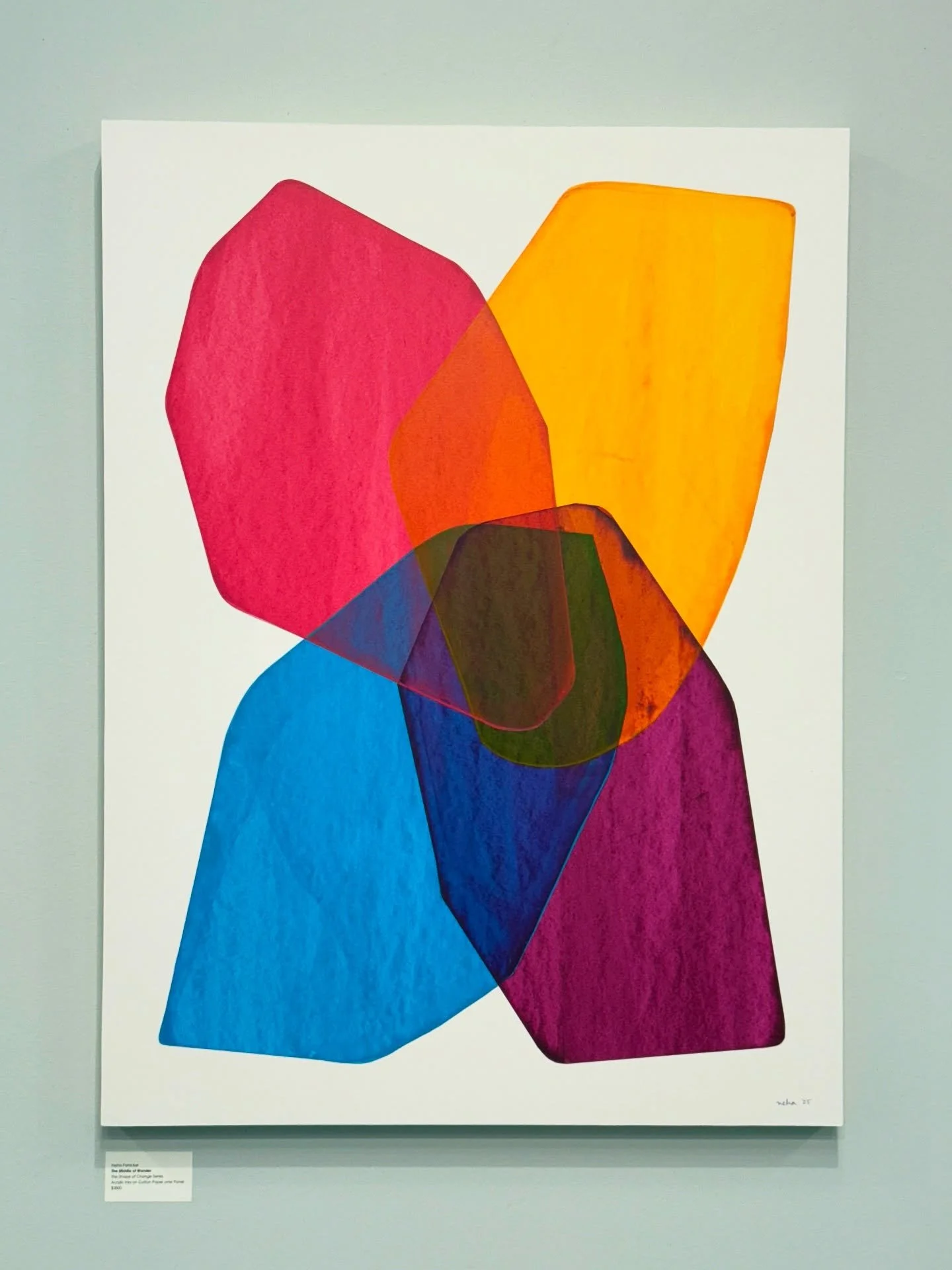 Born and raised in India, Neha Panicker is an artist, architect, designer currently based in Seattle. She has a degree in architecture and a decade-long career designing built spaces and interiors across geographies. Her artistic language and art practice are greatly inspired by her multi-dimensional, multi-cultural contexts. In 2019, she transitioned into her lifelong dream of developing a full time art practice.